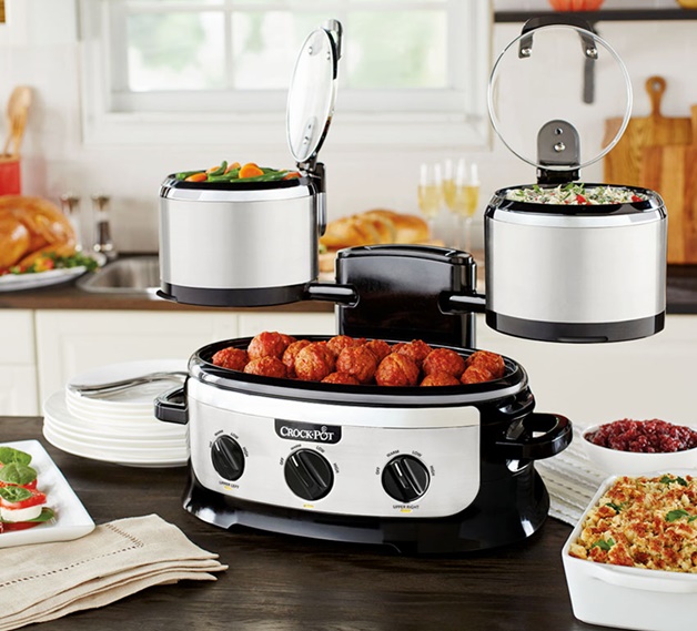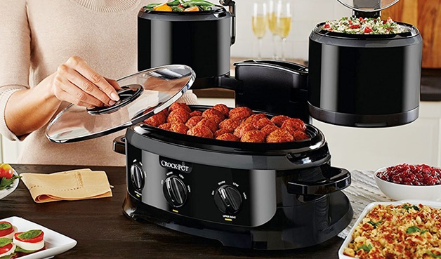 Swing & Serve 慢燉鍋具有銀色與黑色兩種選擇,流線型外觀極具現代感;便於收合的特性不佔空間,適合坪數有限的租屋同胞。採三鍋獨立的方式,控制鈕各居一方,可隨需求調整熱度。擁有 3.3 公升容量的中央大燉鍋適合燉煮主菜、1.4 公升的小燉鍋則方便分配小菜或湯品,鍋具後方更設置餐具位置,一體成型的絕佳設計,即使沒有多餘碗盤仍能用餐,結合可拆式好清理的條件,貼心設想使用者需求。此款慢燉鍋目前能在官網上購買,售價約台幣 2000 元。