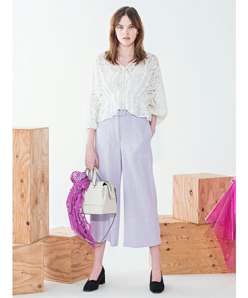 薰衣紫色的褲子,即使搭配少女風格的蕾絲上衣,也不會太甜美。使用微甜的淺色系色彩,可以充分演繹出季節感喔♪