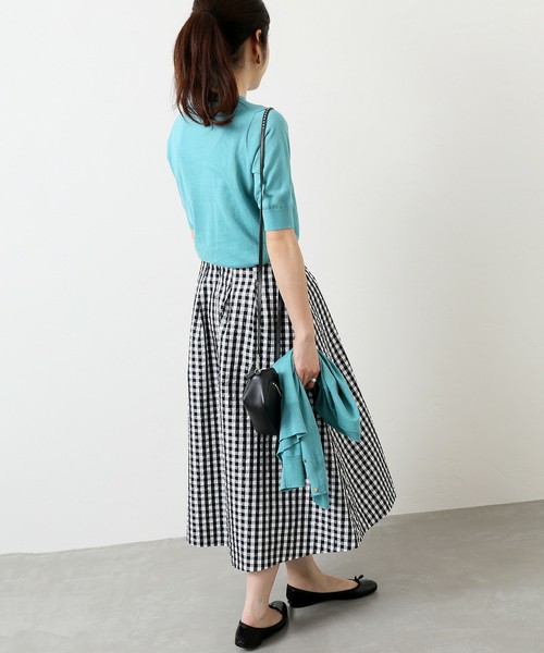 搭配千鳥格的長裙,是時下流行的穿法!雖然是很簡單的搭配,不過卻是抓準了流行趨勢的時尚風格呢!