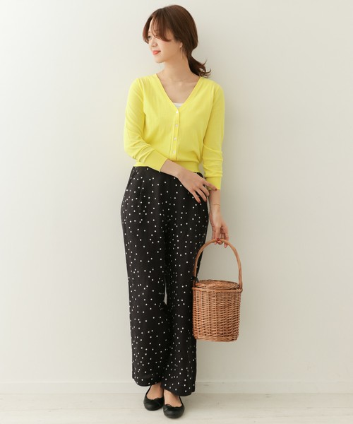 搭配今年春季流行的圓點圖樣,表現充滿季節感的風格。選擇黑底的圓點圖樣服飾,讓配色顯得活潑有張力。