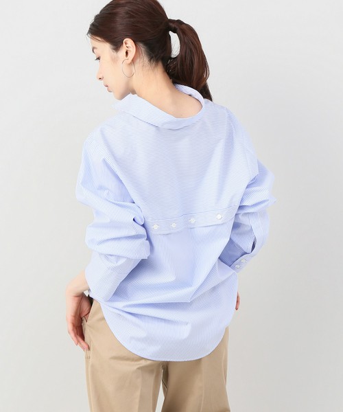 即使是簡單的襯衫,如果後背設計稍作變化,就能一改平常的印象呢。把衣服後方的下擺翻出來就會散發大人的氛圍喔♡搭配米色長褲就完成了俐落輕鬆的休閒穿搭。