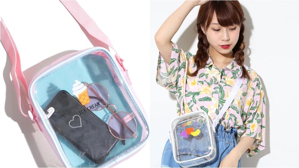 ▲ 印有冰淇淋、水果等圖案的方形透明斜背包(暫譯)超有夏日風情,無論是復古或休閒風都match(日幣售價¥1,069含稅)