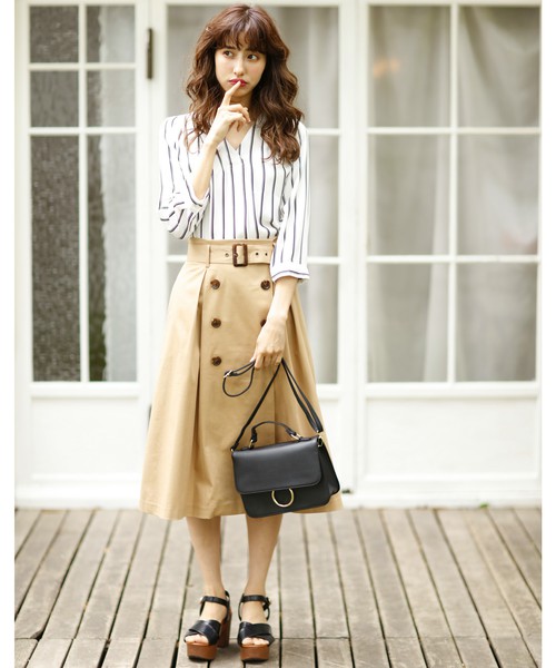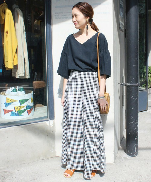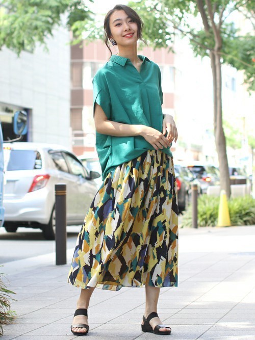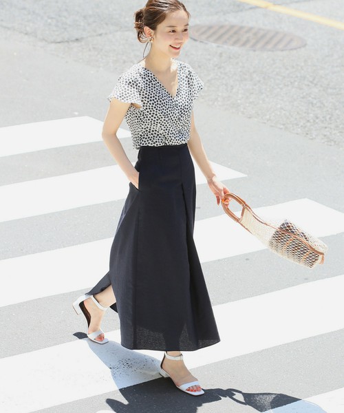 V領上衣流露著懷舊氛圍的小花圖案超可愛。簡約的設計,搭配長裙便呈現自然的成熟風。因為上衣有圖案,在簡單風格的穿搭中顯得特別亮眼。