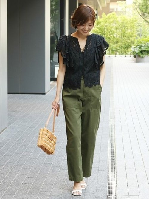 可愛布蕾絲的無袖上衣因為相當有設計感,也很適合成熟風穿搭!這件衣服的外型較緊身,可以讓上半身顯得較纖細,不論搭配哪種褲裝,都能增添時尚感。