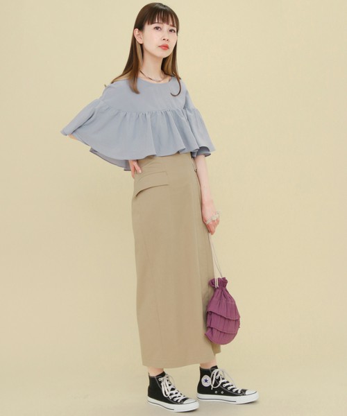 這件打摺上衣有著讓胸前看起來更豐滿的打摺設計、拼接式袖子設計等充滿巧思的造型,簡單穿也非常時尚。除了裙子之外,無論緊身褲還是寬褲,也都很好搭喲。