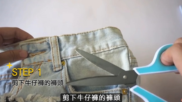 STEP 1:先將牛仔褲的褲頭捲一圈下來,影片中給的樣板大約是36公分,大家可以依據自己常喝的飲料杯調整,如果都喝1000C.C.胖胖杯那當然就剪超長一條這樣XDDDDD