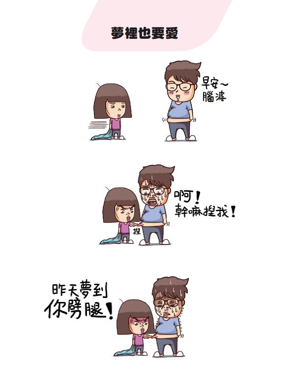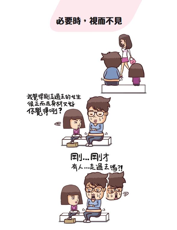 作者:馬修廣告 - 請繼續往下閱讀廣告 - 請繼續往下閱讀 廣告 - 請繼續往下閱讀廣告 - 請繼續往下閱讀 必要時,視而不見 太太:我覺得剛走過去的女生很正,而且身材又好,你覺得咧? 先生:剛…剛才,有人…走過去嗎? 夢裡也要愛 先生:早安~腦婆 先生:啊!幹嘛捏我! 太太:昨天夢到你劈腿! 不要遲到 先生:妳到了啊~還好我只晚了一分鐘 太太:管你幾分鐘,比我晚到就是遲到! 內容由 三友圖書《太太先生之不管神隊友還是豬隊友,你就是我一輩子的牽手!》提供