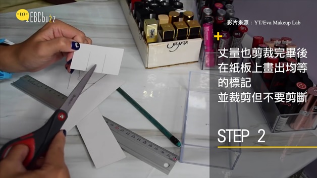第二步就是畫出分隔的標記,並把標記剪開,但記得不要剪斷才能做為卡榫(?)哦~