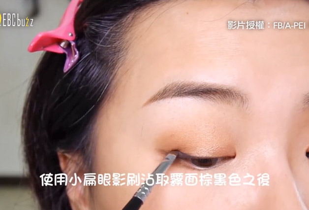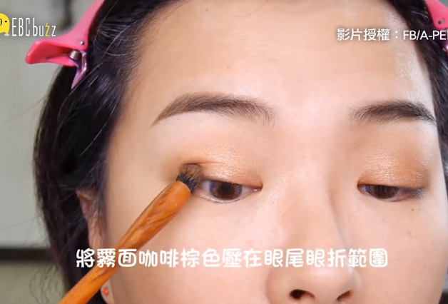 眼尾眼褶的範圍在加強飽和度,讓雙朦更深邃。
