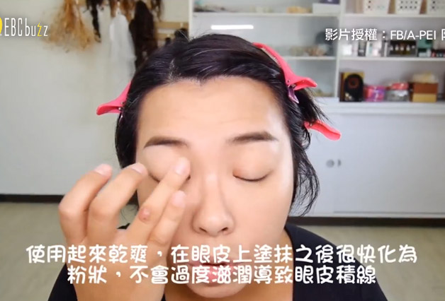 眼皮跟肌膚一樣,要有好的打底,才能讓色彩更均勻的塗抹上去,才不會有卡粉的問題。