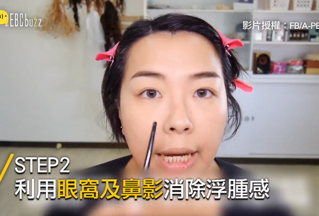 泡泡眼除了睡前不要喝太多水之外,利用打陰影的技巧,也能將浮腫感消除。