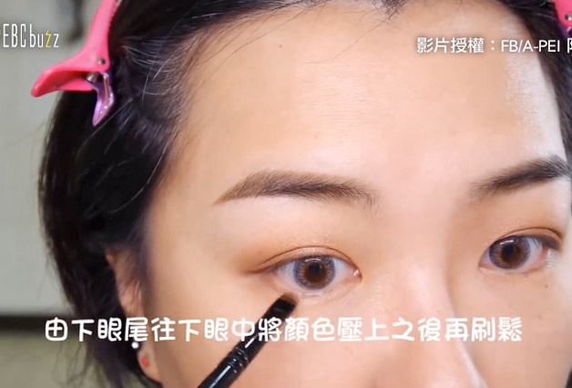 下眼線畫法相似於上眼線,色系改成較明亮的感覺。