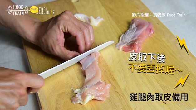 把你準備好的食材瘋狂的在砧板上切好(備料最麻煩惹~),青菜愛吃什麼切什麼,要整把下去煮小編也OK!但請千萬要注意!注意!注意 !(很重要所以說三次XD)雞皮取下後要留下它,別讓它躺去廚餘桶內,因為等等還會用到~相信我不然你會後悔