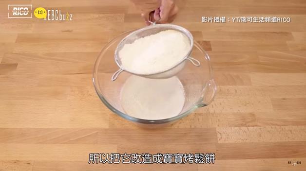 先過篩200公克的鬆餅粉,其實可以分段篩啦!不然一大坨粉,手應該蠻痠的XDDDDD