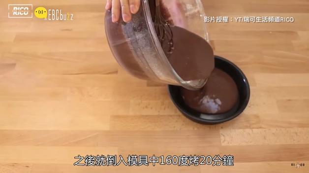 再把30公克融化的巧克力,加進去鬆餅糊裡,攪拌均勻後倒進模具裡!