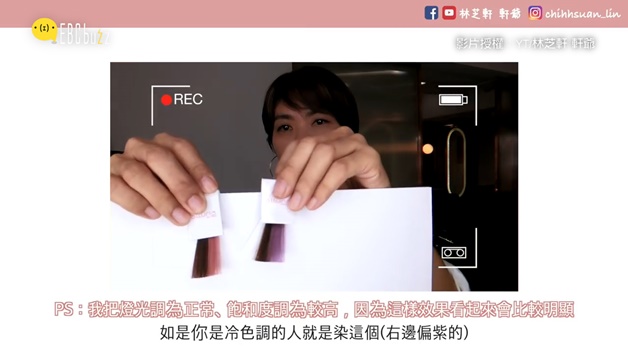 在染髮上,如果是偏向暖色調的人就是何染左邊的偏紅的粉色,如果是屬於冷色調的人則適合右邊偏紫的粉色哦~