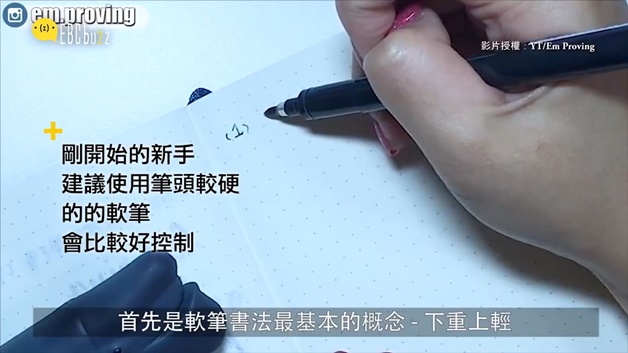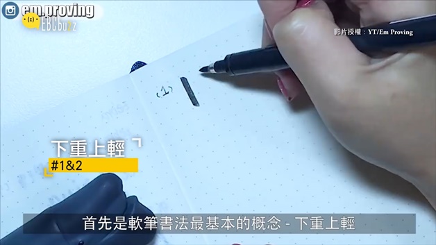 再來就開始練習啦~往下的筆劃可以比較重、比較粗,往上則可以較細,這樣交錯之下就會很不錯囉