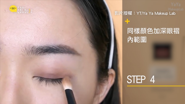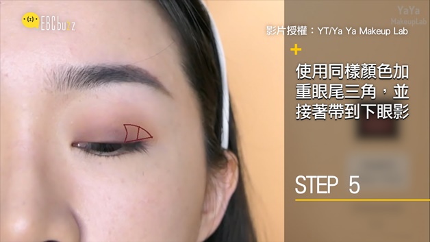 接著加深眼褶內的範圍及眼尾三角,可以多次加強到自己喜歡的顏色,但記得都要用暈染的哦~
