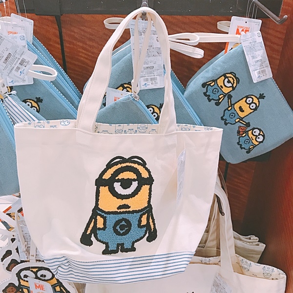 有著小小兵刺繡圖案的購物袋及化妝包,是身為小小兵迷的你絕對要收藏的商品。