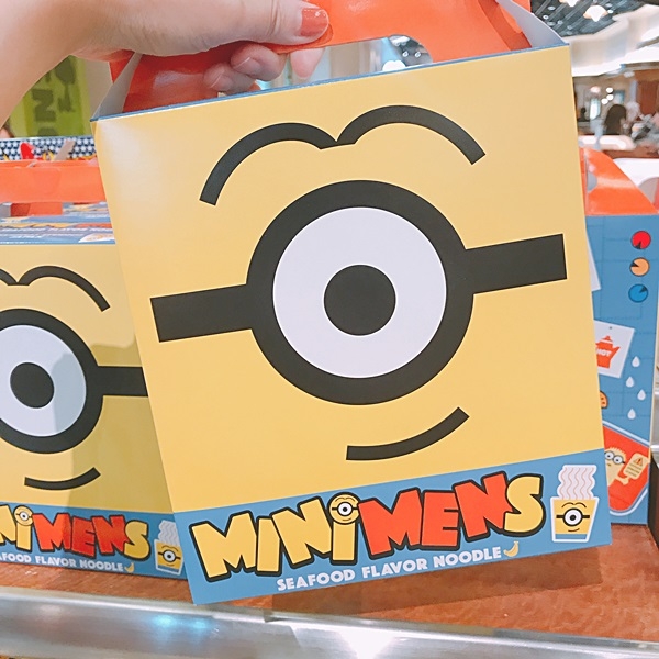 在專賣店內,這個泡麵禮盒絕對是超熱賣的品項,不只外觀有著小小兵圖案,裏頭的泡麵杯身也是小小兵,更讓人驚喜的是,連泡麵裡頭的魚板,也做成小小兵造型呢。