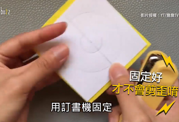 用釘書機將草稿與不織布固定,剪出你要的形狀,拆除訂書針的時候小心拆就不會損壞唷!