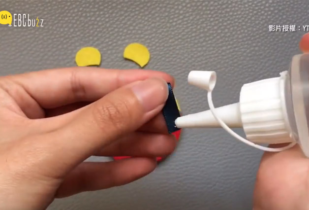 用保麗龍膠將緞帶黏好固定在維尼的頭上,就是這麼簡單!