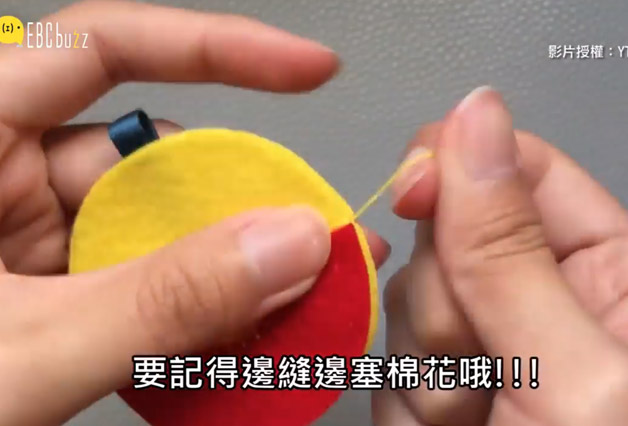 外圈一樣使用毛邊縫縫合,邊縫合邊塞入滿滿扎實的棉花,飽滿的鑰匙圈胖嘟嘟的好可愛。