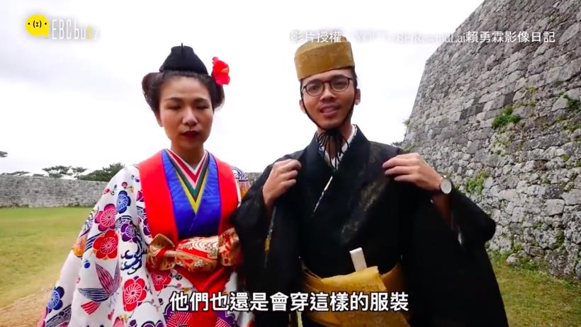 來到沖繩也別忘了要去體驗他們的傳統服飾,這個跟東京或京都大家都會穿的那種和服不太一樣~這個是沖繩當地人才有的款式,然後站在石牆前拍照,超可愛的啦!