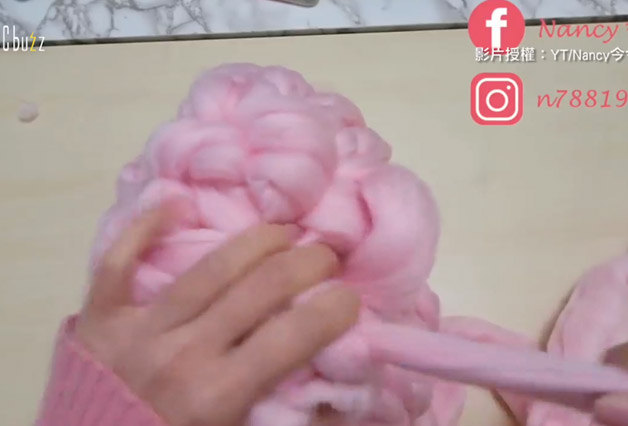 織到想要的大小後,將一開始的結打開,拉緊收尾,被拉緊的毛線自然而然就會聚集成球形,再把線頭往中心塞。