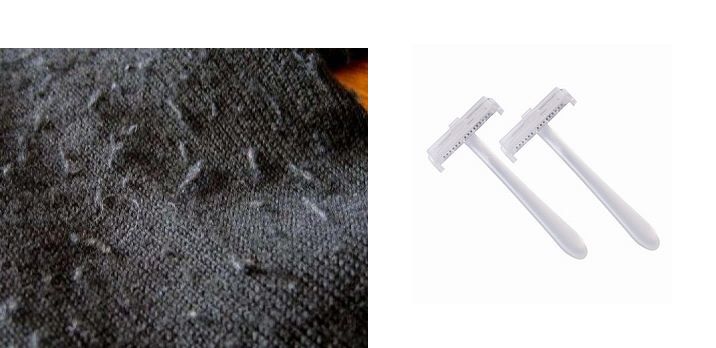 如果想要局部去毛球,又臨時要應急,建議可以使用刮鬍刀,只要將衣服平放,拿著T字型刮鬍刀「平行」刮除毛就OK囉,千萬不要垂直刮,可能會弄壞毛衣喔!