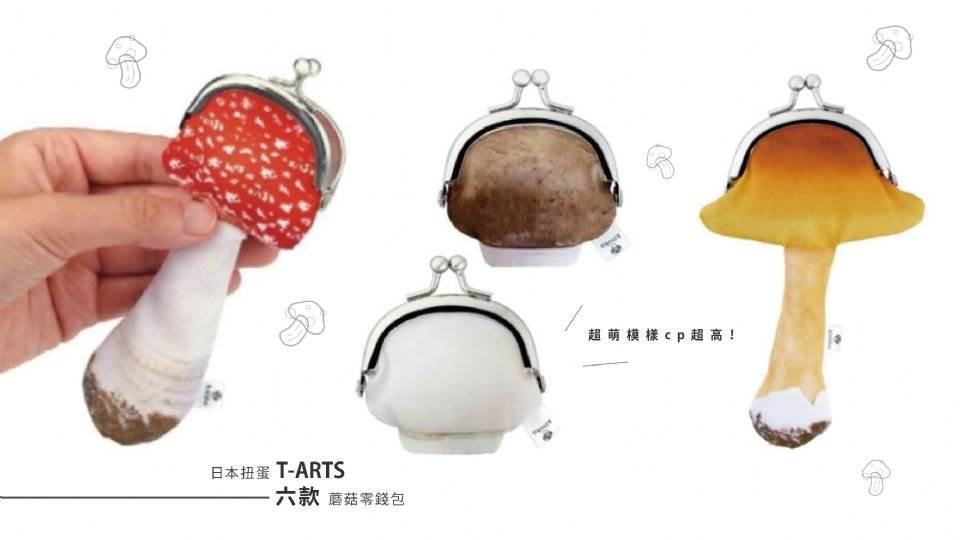 日本扭蛋品牌T-ARTS推出蘑菇系列的造型零錢包,細緻的還原模樣讓菇菇控每個都想收藏,除了日常最常見到的香菇、洋菇、松茸還有各種有毒的蘑菇,例如:姬紅天狗菇等野外毒菇纇,設計成零錢包的造型,既好看又實用,還沒上市就已經讓粉絲們熱烈討論!