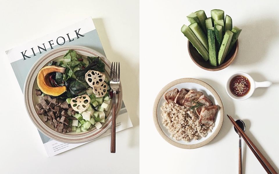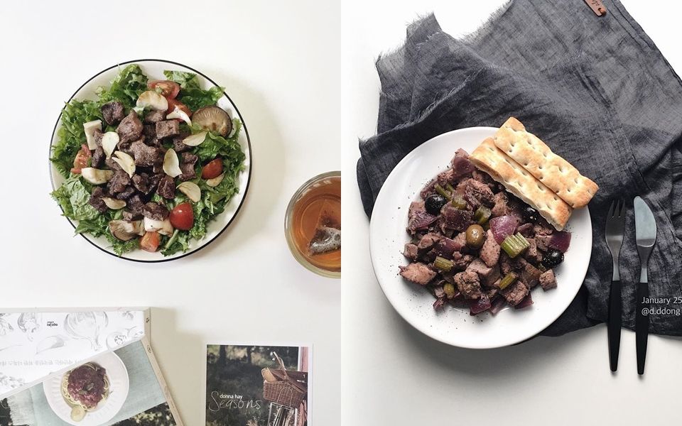 午餐時也會吃一些雞蛋、雞胸肉、牛肉等低脂、高蛋白的食物,保持食物的原型不僅可以確保不吃進多餘的調味、也更有飽足感!