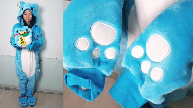 最先要介紹給各位的,絕對非這連身睡衣莫屬啦!整件絨毛的材質,真的是超軟超好摸。重點是這件咖波連身睡衣還很細緻,不管是後面的尾巴,還是說手掌的部分,也都有做出超萌的造型。那當然,最可愛的就是整件連身睡衣的帽子了,軟軟QQ的咖波耳朵真的是超可愛,如果說能買一件在家裡穿,絕對是件頗為療癒的事情。