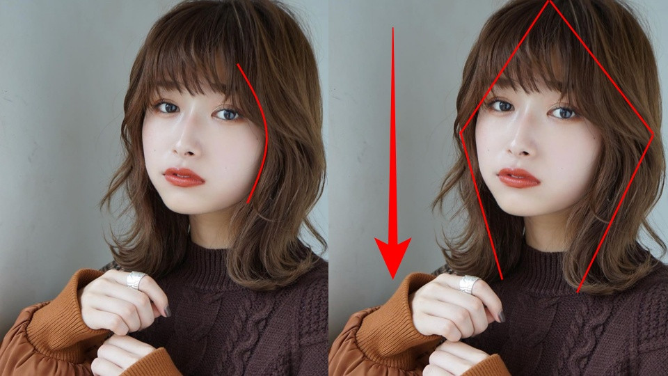 第三的小臉關鍵是「捲髮」。我們觀察下面這張圖會發現,捲度可以破解長臉型的輪廓(左圖);反之直髮容易拉長臉型(右圖),臉看起來會更長!