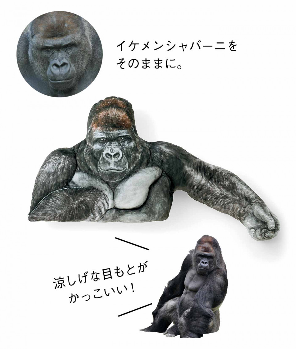 日本最帥猩猩Shabani,擁有冷酷卻帶著溫暖的眼神,一舉一動都像型男般帥氣,令許多女孩被這眼神電到並且前往動物園朝聖。日本you+more推出「Shabani偽男友手臂靠枕」,與東山動物園合作,面部表情細膩,擁有厚實的肩膀和二頭肌能讓女孩們依靠,簡直是比男友更可靠的存在呀~