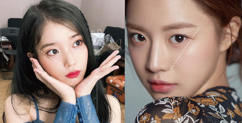 其實觀察韓星們的日常妝容可以發現,外眼線拉出的線條,並沒有我們想像中的長!化妝師分享,最適合我們的日常眼線長度其實只到「鼻翼延長線」(下圖白色虛線)。因為每個人的五官比例略有不同,與其說眼尾拉長幾公分,不如透過這些定位線去找到最適合自己的畫法。