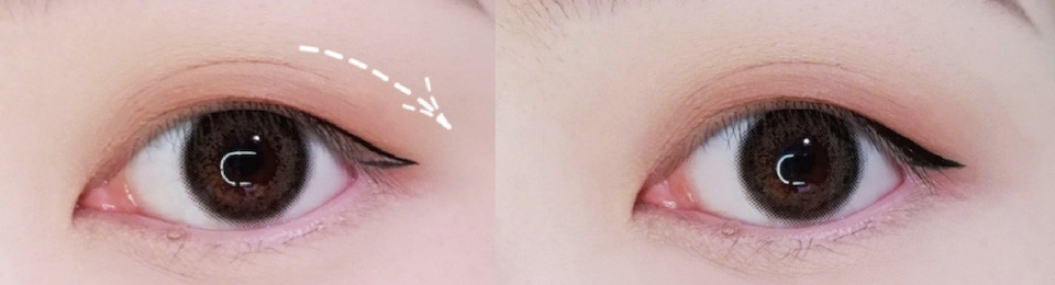 接著,從睫毛根部後1/3處外拉一條線,並讓上下兩條眼影線交會。最後,填滿三角形空隙。