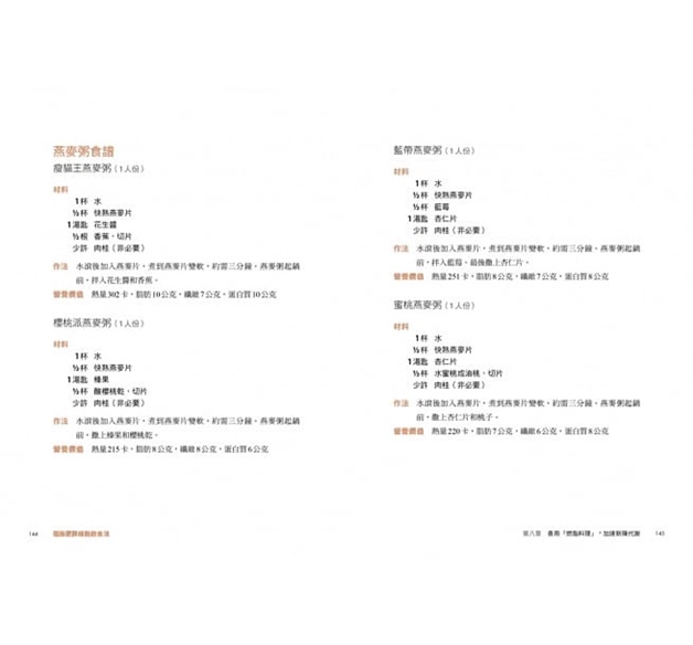 首先是阻斷肥胖細胞的飲料、雞蛋、紅色水果、橄欖油、豆類、米、燕麥、植物蛋白質、綠葉蔬菜、綠茶、彩色蔬菜、瘦肉、魚類都建議攝取,甚至還能加入你喜歡的調味料(巧克力也行)!(但同時也限制吃乳製品、小麥、紅肉、精緻穀物等食材)