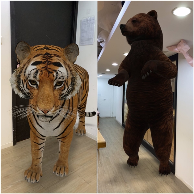 出現在手機螢幕上的動物不只型態相當擬真,還會做出吼叫、擺動四肢等動作,相當生動。觀賞時還可按下中間的拍照鍵,將動物照片存至手機中,發到社群軟體上曬一下你家的動物園。(笑)