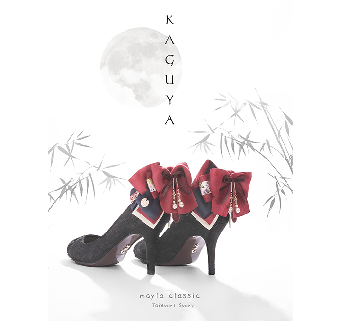 其中老妹覺得最最浮誇的就是這款高跟鞋了,設計靈感來自日本的物語故事「竹取公主」,仔細看高跟鞋上的蝴蝶結,花樣和設計都能讓人聯想到日本的和服,鞋身則是使用蕾絲花樣,又美又高調,真的超吸睛!