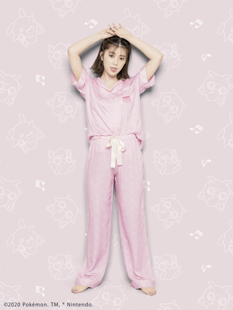 GiRLS by PEACH JOHN首次推出的睡衣系列,請到寶可夢的超 人氣角色胖丁登場。襯衫式睡衣胸前口袋繡有 POKÉMON GiRLS的LOGO,長睡褲褲頭使用緞面綁帶更添質感。 色系是胖丁的淡粉色,加上淺黃色線條印滿滿的胖丁與音符,彷彿聽到胖丁的歌聲就會睡著,跟睡衣的搭配再適合不過!