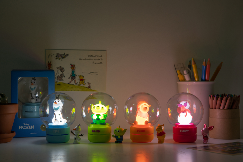 韓國10×10一共推出4個經典迪士尼角色香氛夜燈,分別是三眼怪、雪寶、維尼與小豬。每個角色都有自己專屬的顏色,夜晚化身小夜燈時,也會以自己的專屬燈色現身唷。不管是早上或夜晚,都有不同的風格呢。如果小編擁有這款夜燈,每天真的會好好珍惜夜晚時光XD