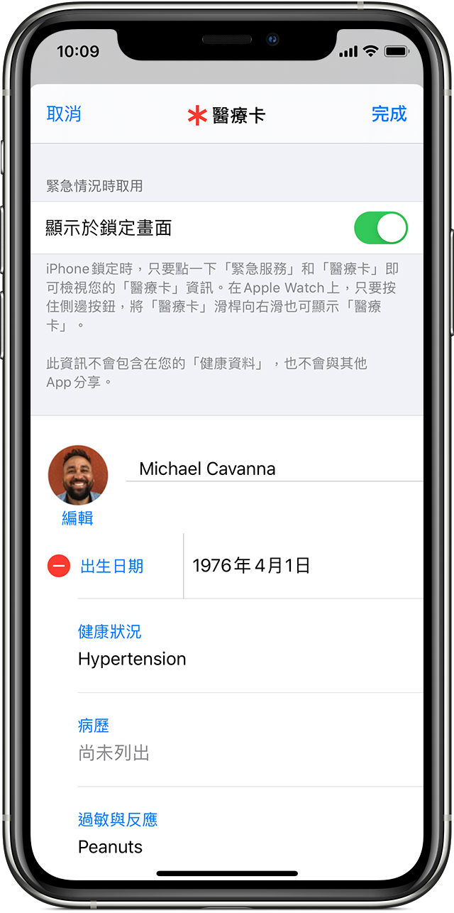 除此之外Apple Watch 可以設定專屬「醫療卡」在出現意外時,手錶除了播打緊急電話外,通話結束後,會從醫療卡中取得緊急聯絡資訊,向緊急聯絡人傳送所在位置的訊息,並告知他們手錶偵測到嚴重跌倒的跡象,可以讓親友及時掌握手錶持有者的資訊。