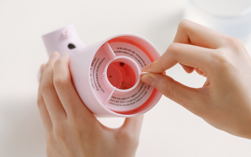 「BT21自動給皂機」採用電池式,只要在底部裝上3顆AA電池,並組裝上清潔液盒就能使用!