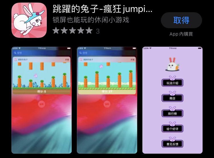 若是已經玩膩Clumsy Bird,可以跟著小編嘗試玩這款鮮豔版的小遊戲「跳躍的兔子-瘋狂Jumping」!(笑),雖然玩法大同小異,不過畫面中出現的是一隻口愛到爆的小兔兔啊,而且兔兔在遊戲中所遇到的障礙物是一根根高低不同的胡蘿蔔,小編好奇,為什麼兔兔不直接把胡蘿蔔吃掉就好啦,還要一根根的翻過去,有點辛苦XD,畫面的口愛程度已經征服偶的心啦~