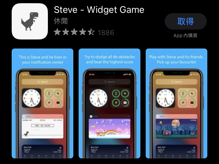 1.先在APP Store輸入「Widget Game」並挑選一款你最喜歡的遊戲。