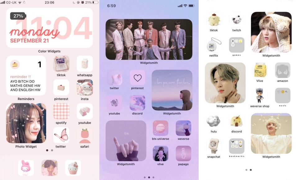 如果有特別喜愛的偶像,也可以善用Widgetsmith App來設計一套完美的idol風主題,相信大家手機相簿應該都存好歐巴、歐膩們神仙美圖了吧~接下來就只要選出喜歡的色調,再搭配上可愛的app圖示就完成了,下方的可愛風APP素材提供給大家收藏喲!
