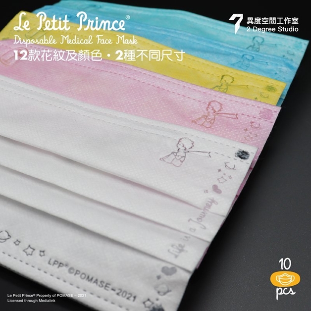 小王子系列則分為平面及立體兩種款式,平面口罩更是細分到不同的尺寸,有16公分、17.5公分的差別,真的是超貼心~