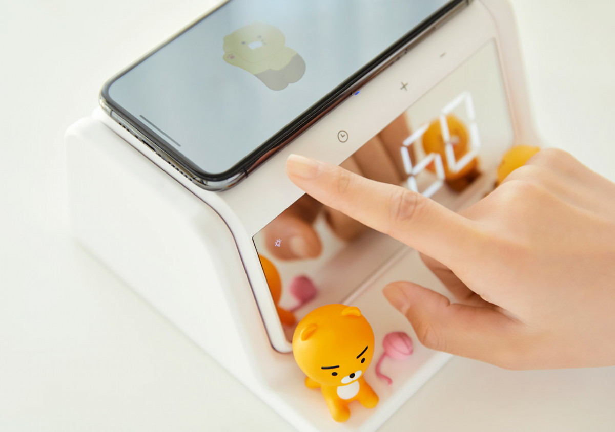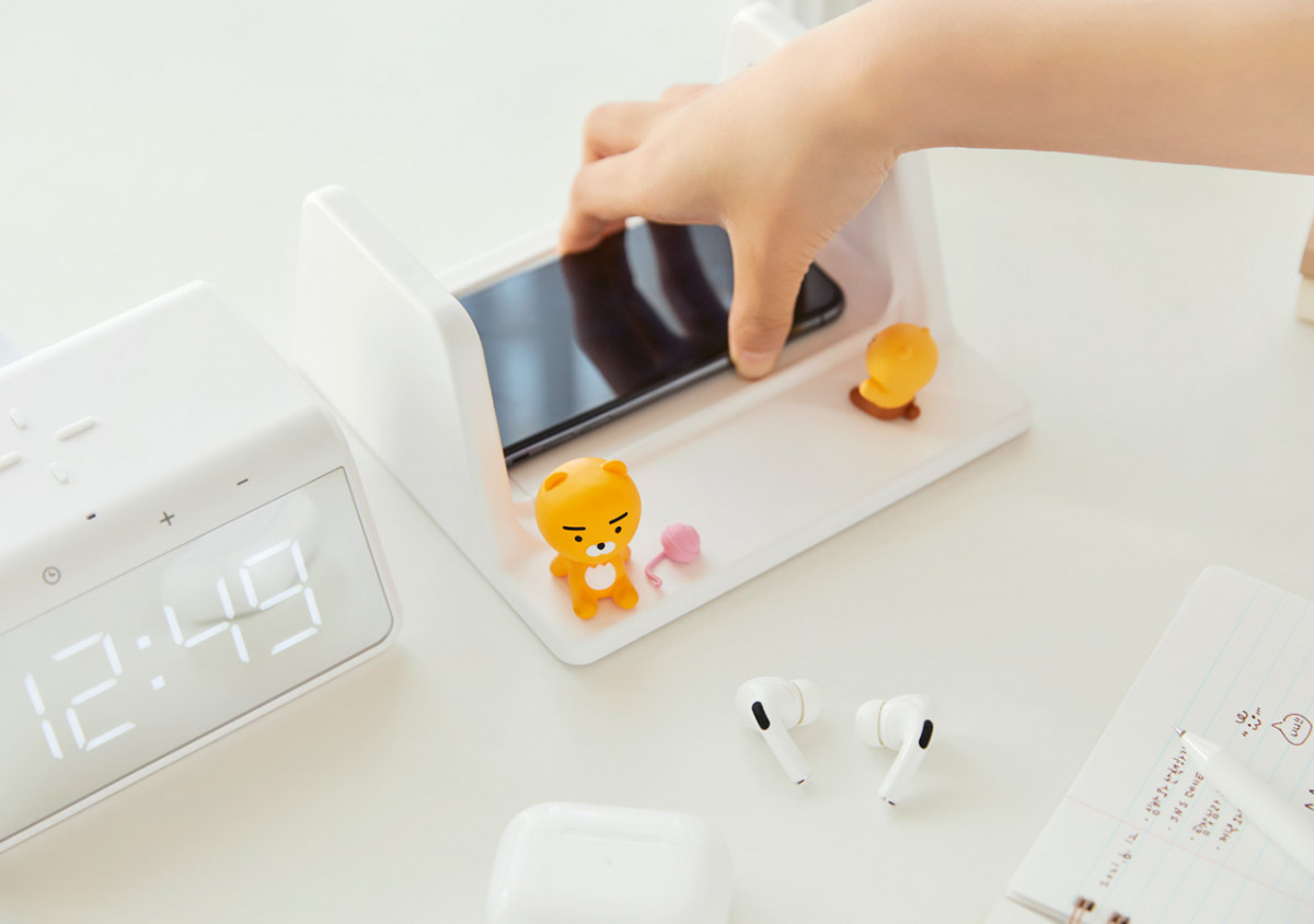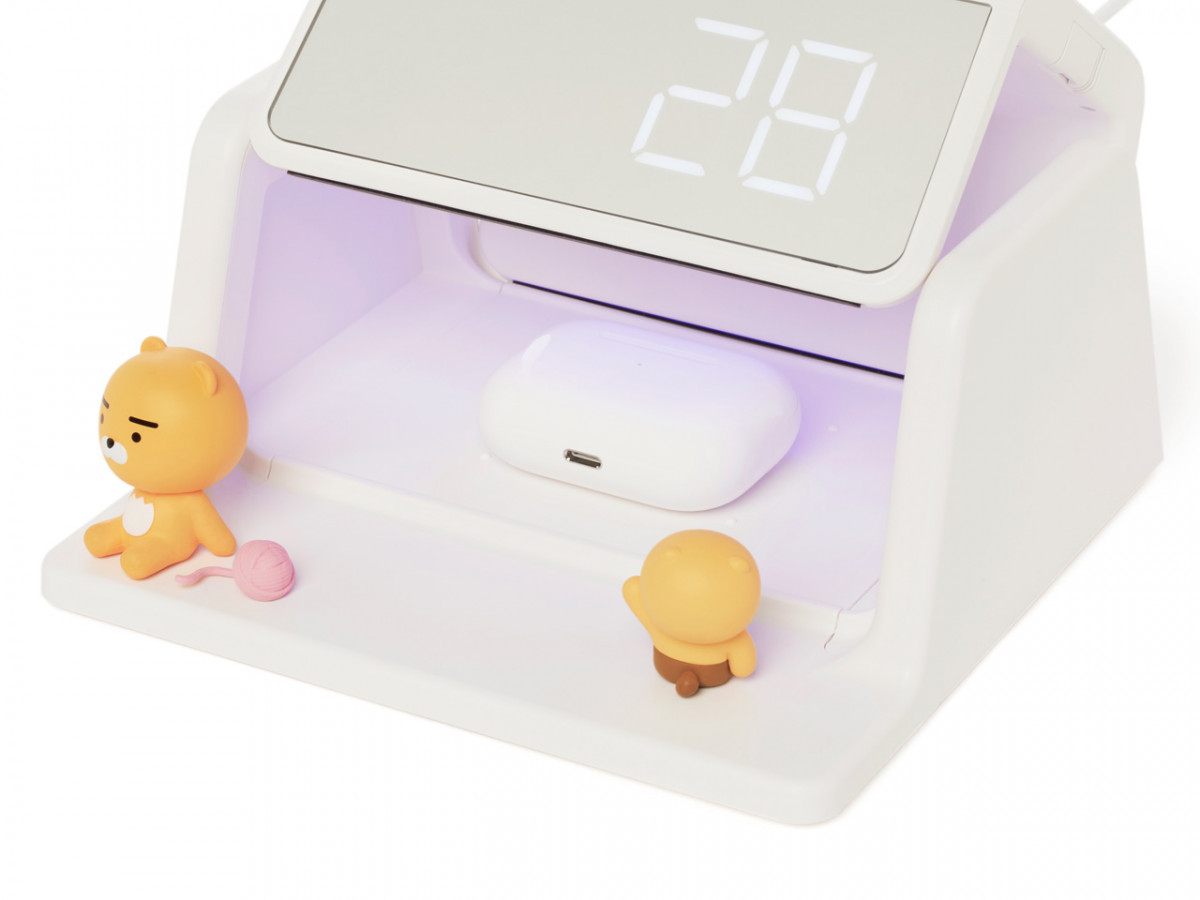 KakaoFriends之前曾推出過UV殺菌器、無線充電板等周邊,而這次KakaoFriends就直接將UV殺菌和無線充電的功能結合,推出新的「萊恩UV殺菌無線充電器」,更設計出一面LED螢幕作為電子時鐘!