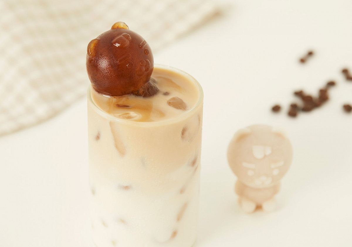 變成冰塊的萊恩放在咖啡上彷彿在做咖啡浴一樣,清爽又可愛的樣子讓下午茶時光都變得更療癒了!